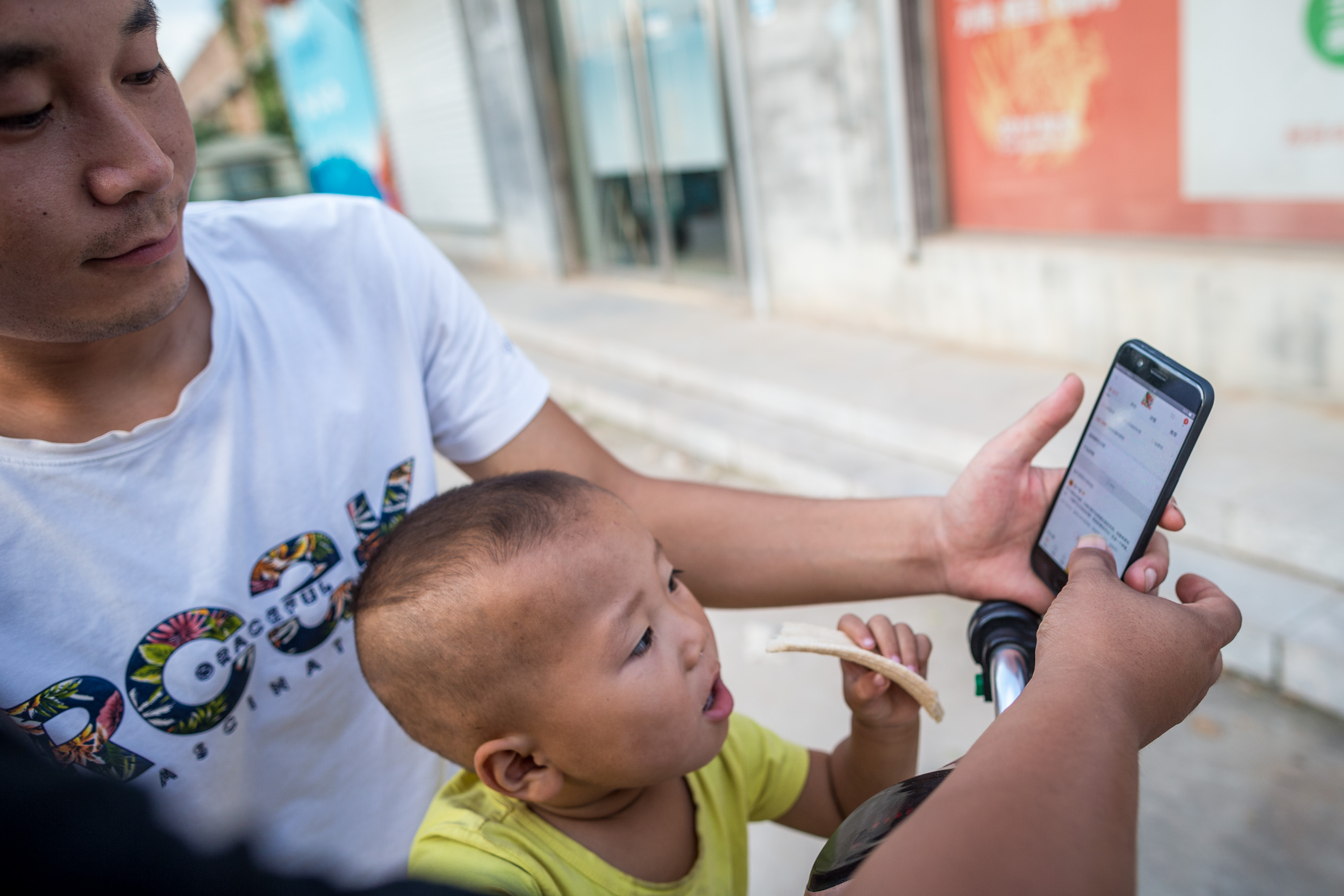 Villager Li Yongchang shows online shopping websites to his son in Liulin Village, Xingtai City of north China's Hebei Province.(Xinhua/Liu Bin)