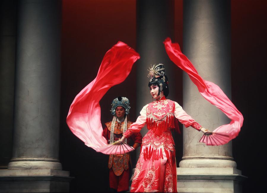 Chinese artists perform the Peking Opera version of Turandot in Rome, Italy, Feb. 5, 2019. (Xinhua/Gong Qing)
