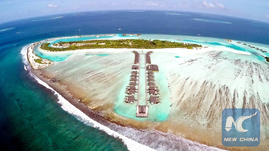 Photo taken on Sept. 11, 2014 shows a bird view of the Paradise Island, Maldives. (Xinhua)