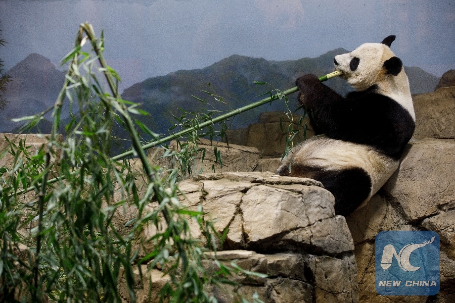 File Photo: Giant Panda Mei Xiang eats treats in the giant panda house at the Smithsonian's National Zoo in Washington D.C., the United States, on Feb. 23, 2019. (Xinhua/Ting Shen)