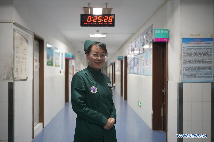 At 12:25 am, Wang Qian, a nurse of the Anxin County Hospital, stands in the corridor at the hospital in Xiongan New Area, north China's Hebei Province, April 1, 2019. Known as the China's "city of the future", Xiongan is to transform from being a blueprint to a tangible reality starting this year. People living here are taking part in the around-the-clock efforts of building a high-profile city from scratch. (Xinhua/Xing Guangli)