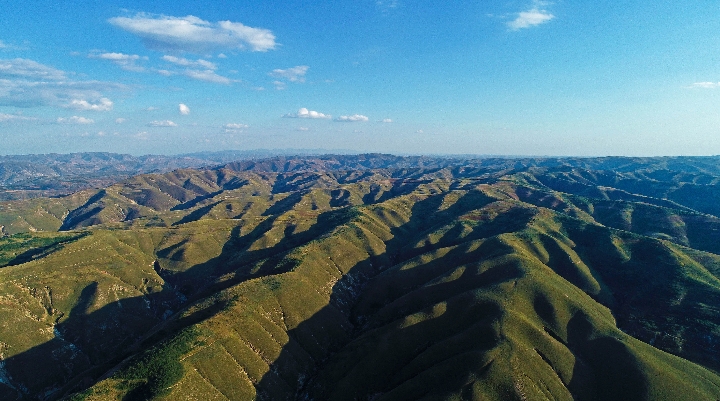 Aerial photo taken on Oct. 3, 2018 shows mountains in Guyuan, northwest China's Ningxia Hui Autonomous Region. (Xinhua/Wang Peng)