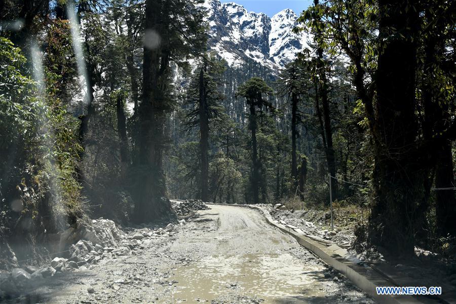 Photo taken on April 11, 2019 shows the forest on the road to Medog County, Nyingchi City of southwest China's Tibet Autonomous Region. Medog, meaning "Secret Lotus" in the Tibetan language, is located in Nyingchi of southeast Tibet. Being on the lower reaches of the Yarlung Zangbo River and the south of the Himalayas, Medog County boasts of amazing natural landscapes due to its unique geographical position. Before the traffic opened, people could not arrive in Medog except for walking. Getting in and out of Medog was a dangerous journey. Frequent natural disasters such as avalanches, landslides, and mudslides blocked visitors from the outside world. The construction of roads to Medog is a tough task because of the complicated geological conditions and disastrous weather. With several attempts thwarted in the last decades, a 117-kilometer highway connecting Medog with neighboring Bomi County finally opened on Oct. 31, 2013. The completion of the Medog highway not only promoted the communication between Medog and the outside world, but also benefited the poverty relief of border ethnic minorities. Crude stilted houses have been replaced with modern houses consisting of complete facilities. Commodity prices have been lowered to a level similar with the outside world. The local economy especially tourism develops fast in recent years, unfolding to the world a new Medog with its mysterious beauty. (Xinhua/Li Xin)
