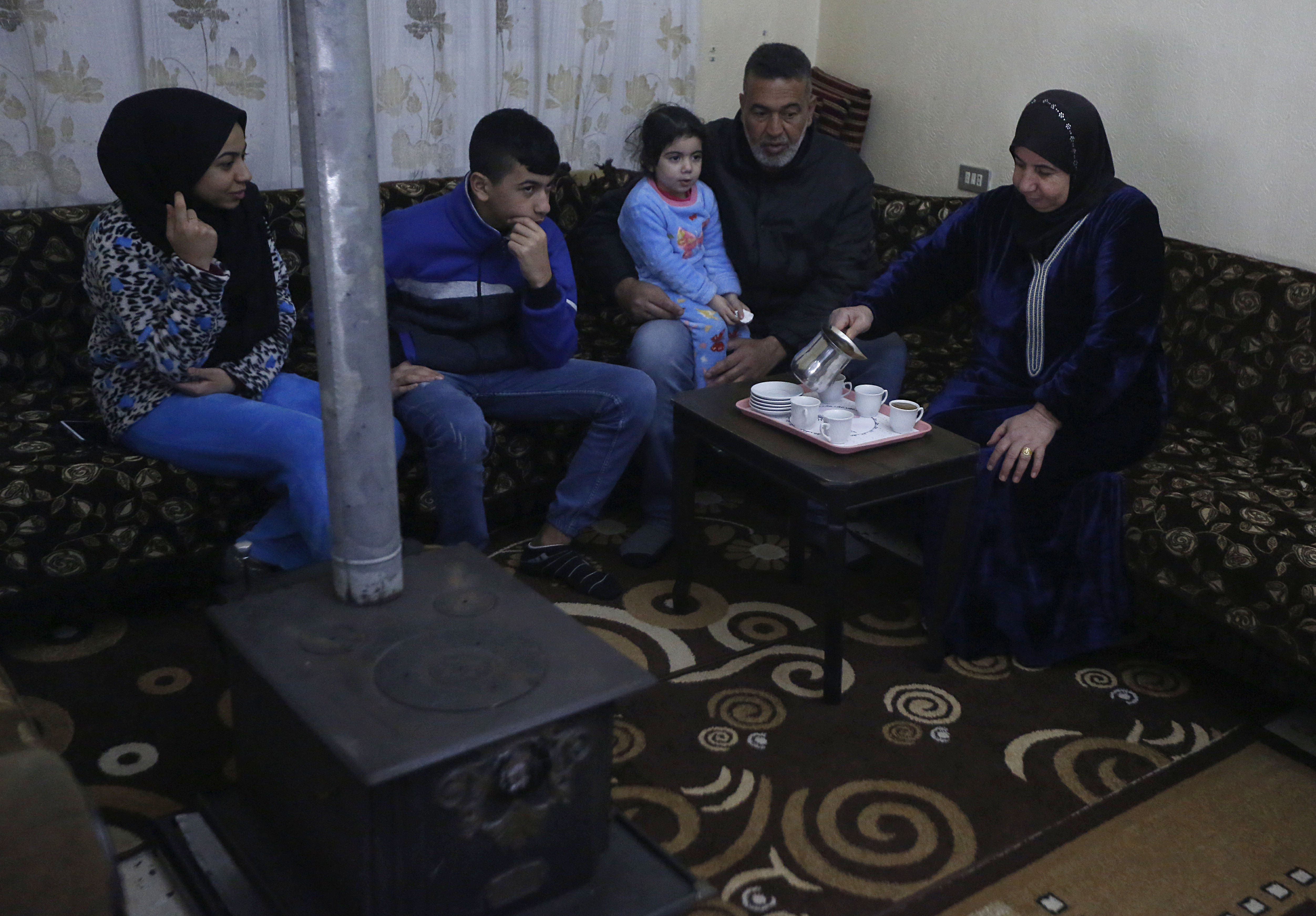 The family of Ahmad Abbas sit together in a rented apartment in Ketermaya, southeast of Beirut, Lebanon, March 8, 2019. (Xinhua/Bilal Jawich)