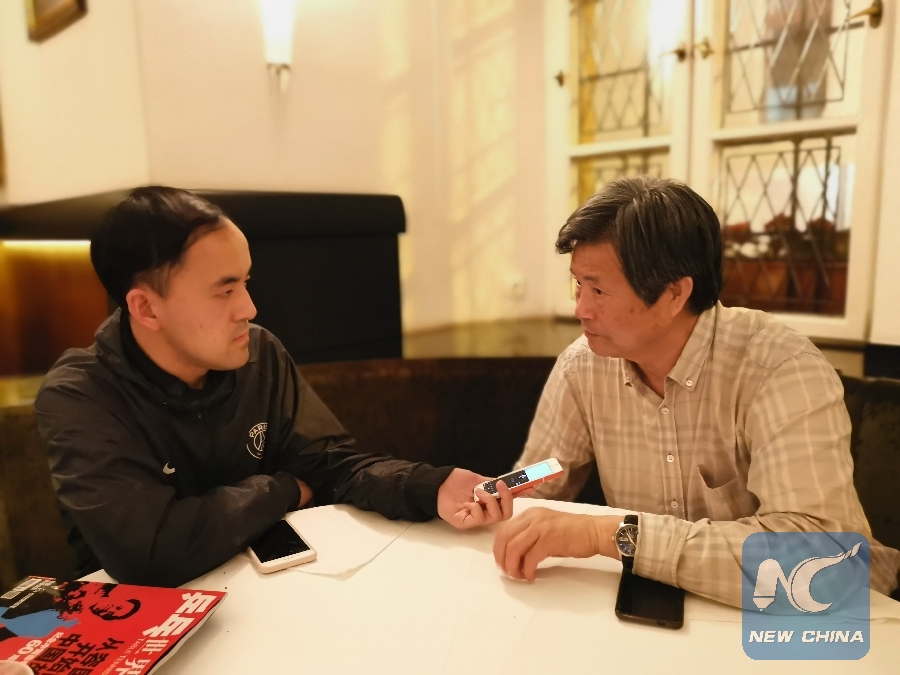 Prof. Sun Qilin talks to Xinhua reporter Su Bin (Photo by Ji Yong)