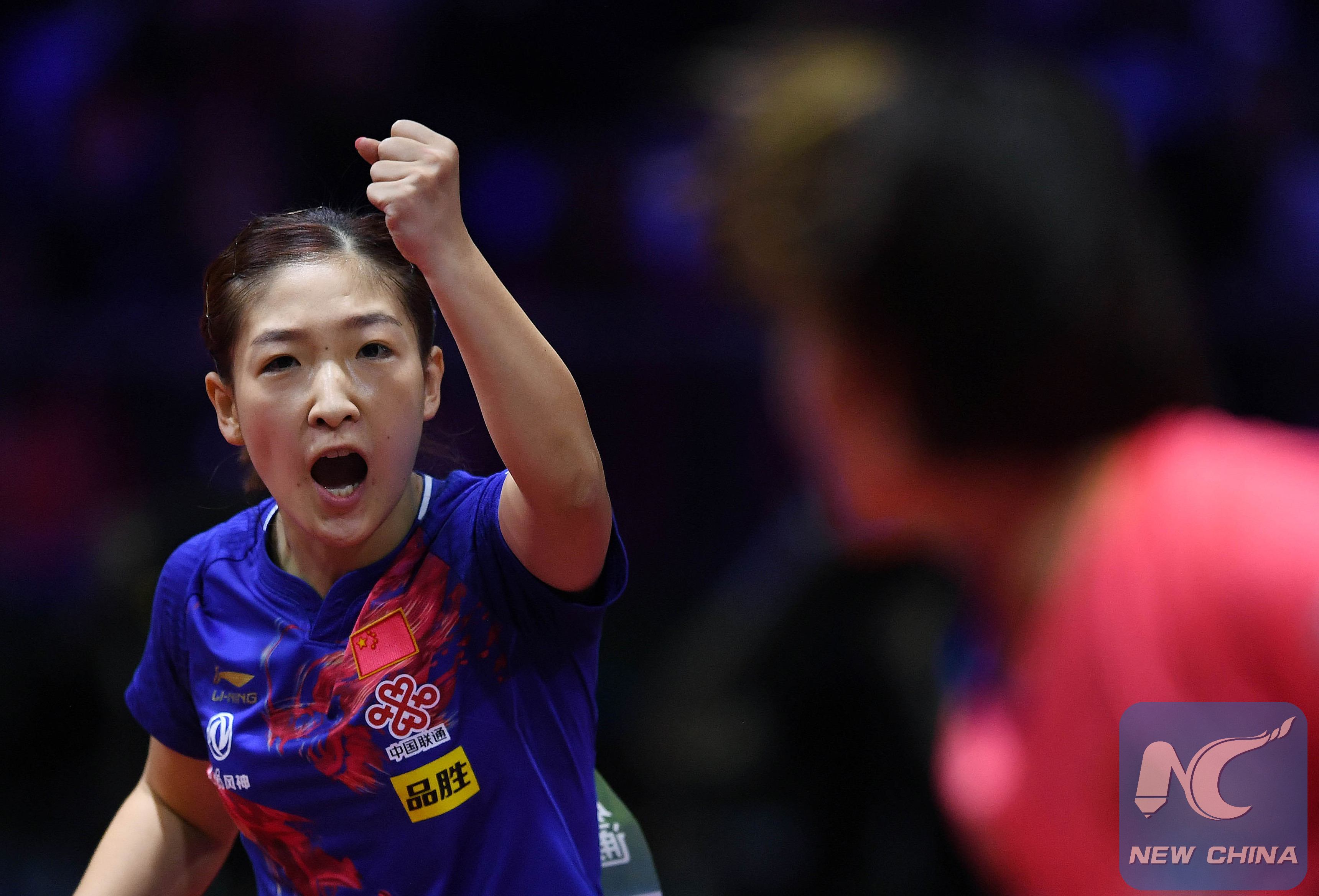 BUDAPEST, April 27 (Xinhua) -- Liu Shiwen gave fellow Chinese Chen Meng an 11-0 beating en route to winning the women's singles title at the World Table Tennis Championships here on Saturday.