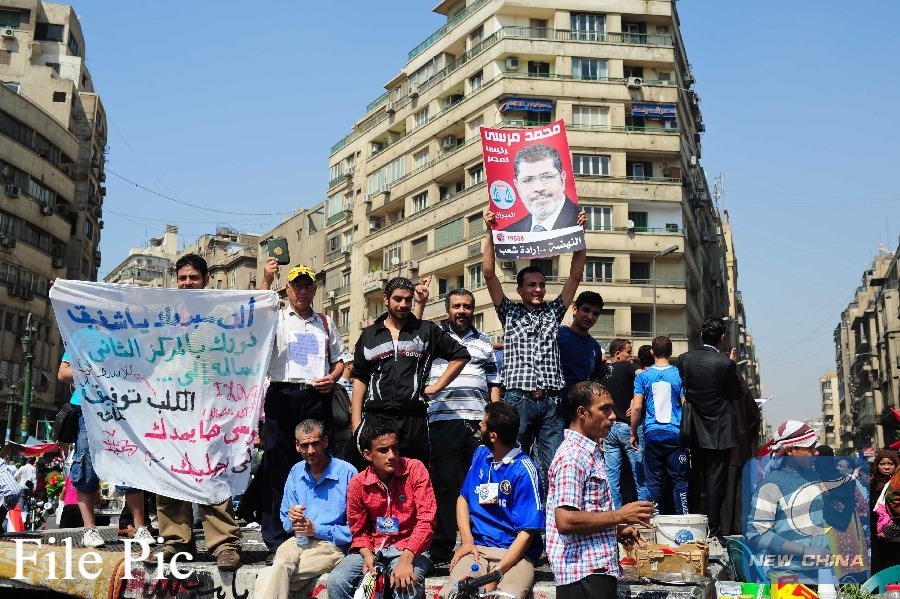 Supporters of Muslim Brotherhood's candidate Mohamed Morsi celebrate at Tahrir Square in Cairo, Egypt,on June 18, 2012. (Xinhua File photo)
