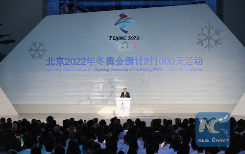 The '1000-Day-to-Go' countdown ceremony was held in Beijing on May 10. (Xinhua/Xu Zijian)