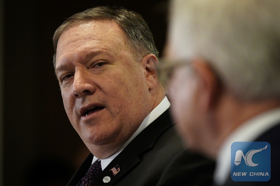 BRUSSELS, May 11 (Xinhua) -- U.S. Secretary of State Mike Pompeo has for the second time this week canceled part of his travel plans in Europe, cutting short a trip that was supposed to shore up U.S. commitment and ties with traditional allies. Instead, he left a trail of disagreements that dogged the transatlantic relations.