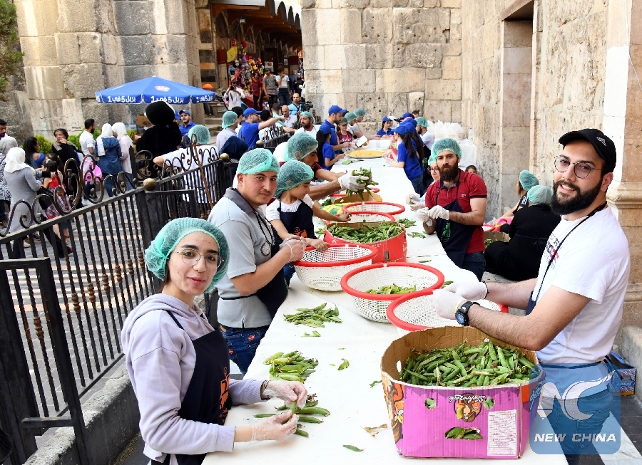 DAMASCUS, May 15 (Xinhua) -- For the seventh straight year, the Khasa al-Jou initiative is bringing volunteers together to prepare food for the poor in Syria during the holy month of Ramadan.