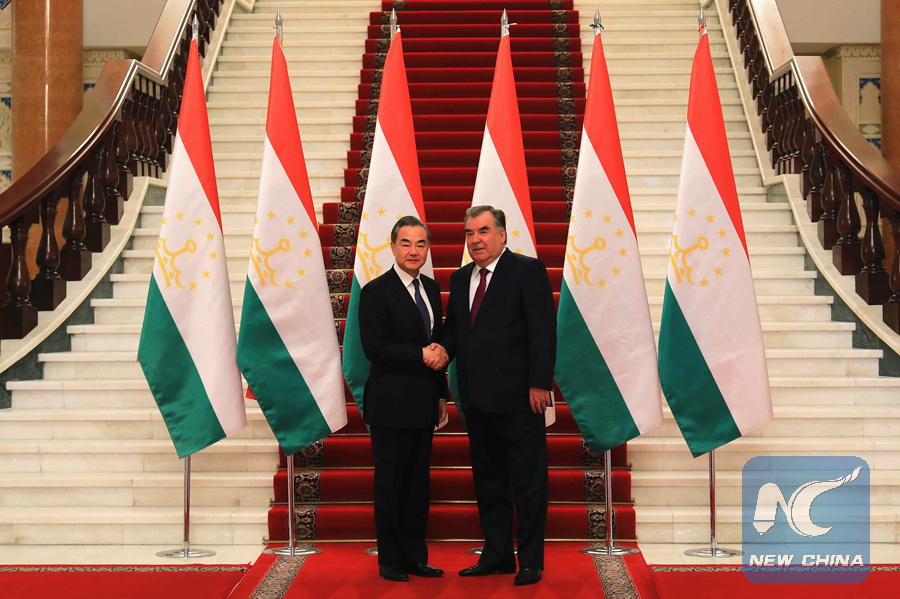 DUSHANBE, May 20 (Xinhua) -- Tajikistan's President Emomali Rahmon and Chinese State Councilor and Foreign Minister Wang Yi on Monday agreed to boost cooperation between the two countries in various fields and further align their development strategies.