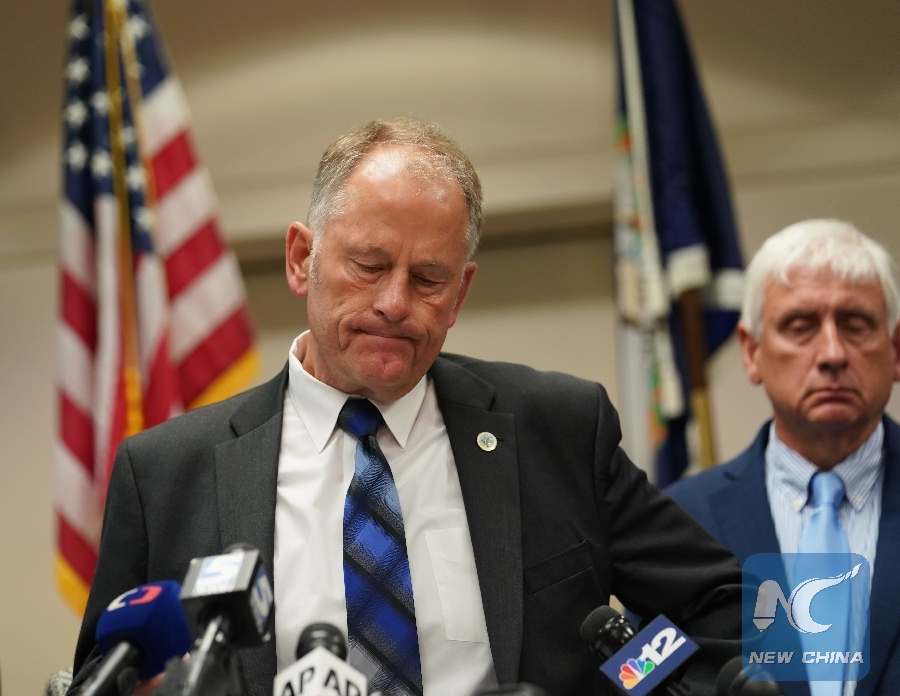 Virginia Beach City Manager Dave Hansen (L) attends a press conference in Virginia Beach, Virginia, the United States, June 1, 2019. (Xinhua/Liu Jie)
