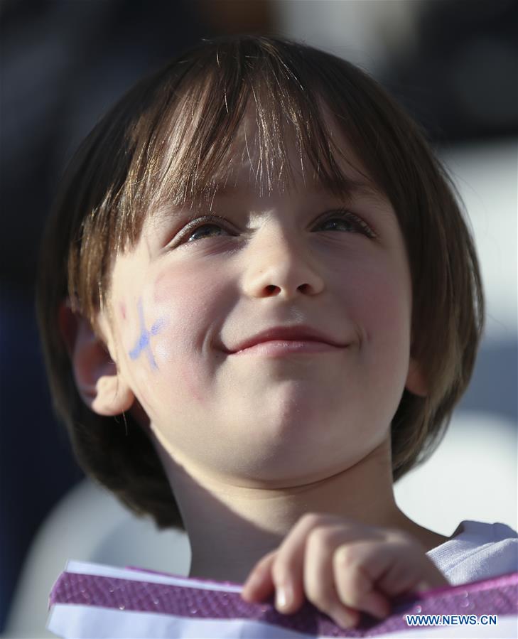 A girl reacts ahead of the Group A match between Norway and Nigeria at the 2019 FIFA Women's World Cup in Reims, France, June 8, 2019. (Xinhua/Zheng Huansong)
