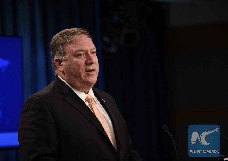 File Photo: U.S. Secretary of State Mike Pompeo speaks during a press briefing in Washington D.C., the United States, April 22, 2019. (Xinhua/Liu Jie)