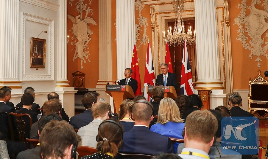 Following the dialogue, Hu and Hammond attended a joint press conference, after which Hu also met with British Prime Minister Theresa May.