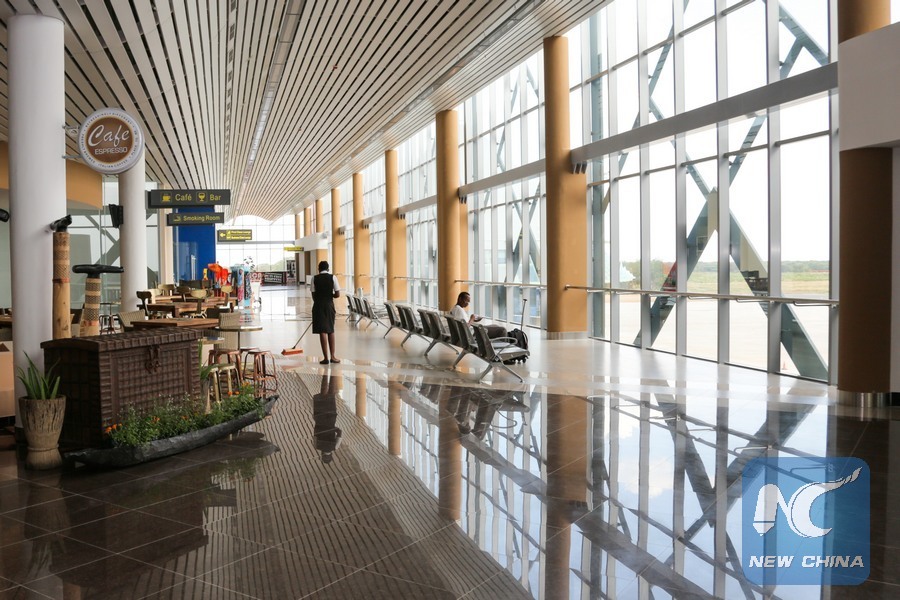 An airport worker goes about her work at the new terminal of the Victoria Falls Airport, Zimbabwe, Dec. 11, 2015. The Chinese-contracted airport project, backed by 150 million U.S dollars concessional loan from China Exim Bank, was completed in December. The expansion enables the airport to accommodate most long-haul, wide-body aircraft to Africa's most celebrated waterfalls, the Victoria Falls. (Xinhua/Wang Yue)