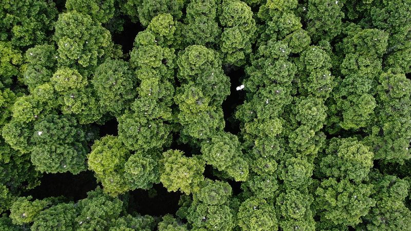 Egrets rest on top of trees at the Dafeng Milu National Nature Reserve in Yancheng. (Xinhua/Li Xiang)
