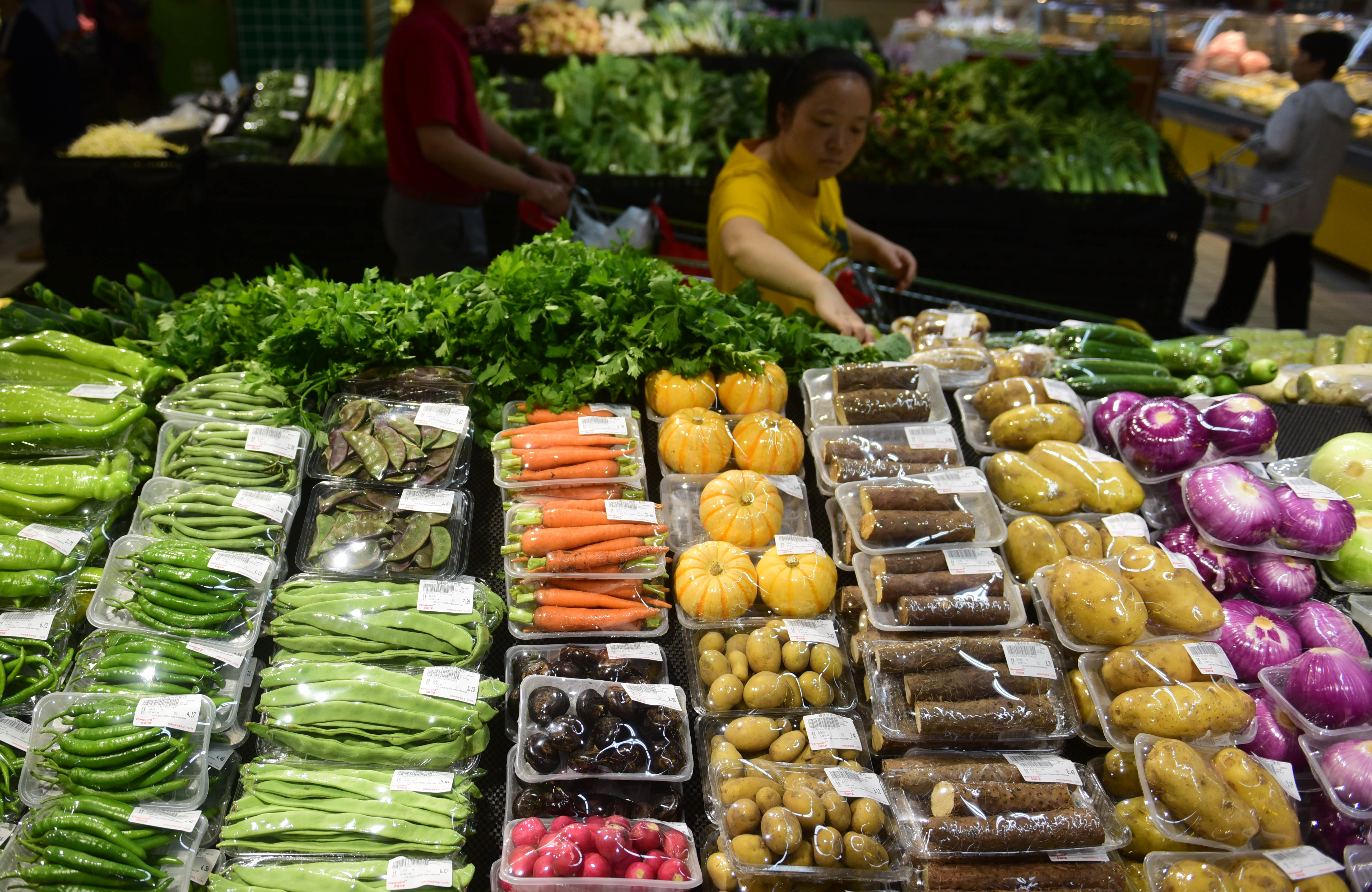 Customers select vegetables at a supermarket in Nanjing, east China's Jiangsu Province, June 12, 2019. (Xinhua)
