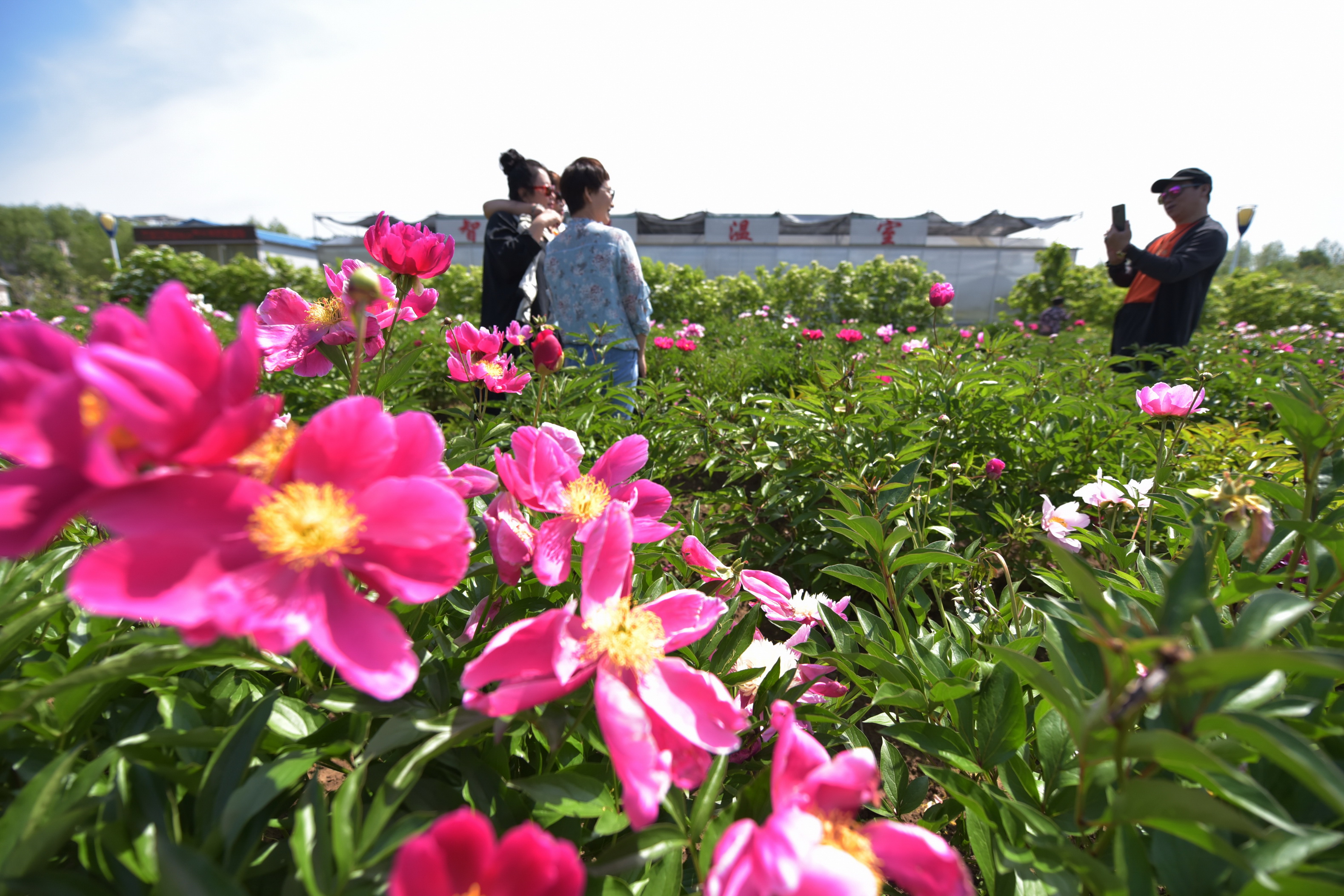 Visitors pose for photos among blossoming Chinese herbaceous peony flowers on campus of Heilongjiang Agricultural Economy Vocational College in Mudanjiang City, northeast China's Heilongjiang Province, June 19, 2019. (Xinhua/Zhang Chunxiang)