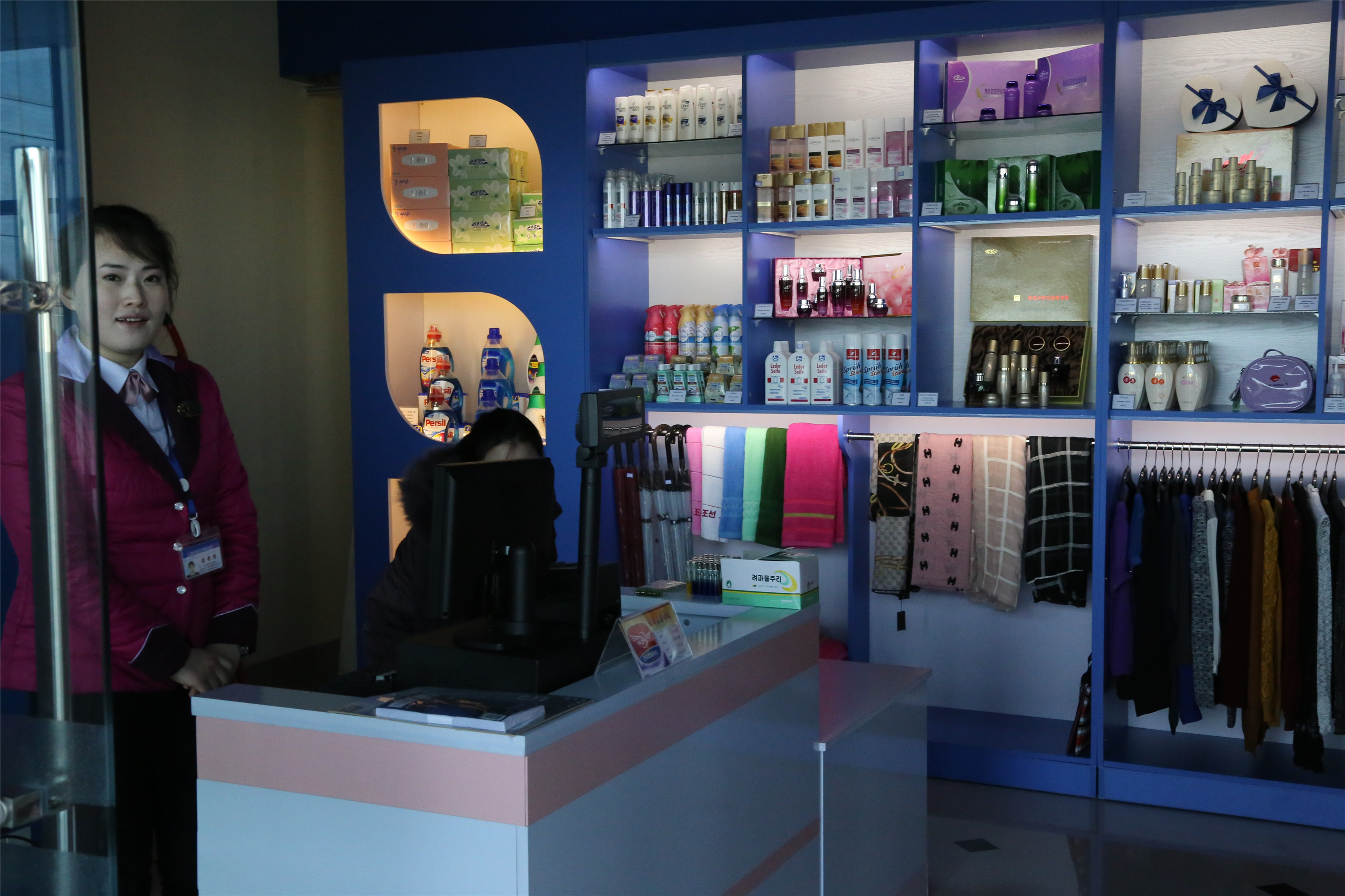 Photo taken on Feb. 25, 2016 shows a shop at Terminal One of Pyongyang Sunan International Airport in the DPRK. (Xinhua/Lu Rui)
