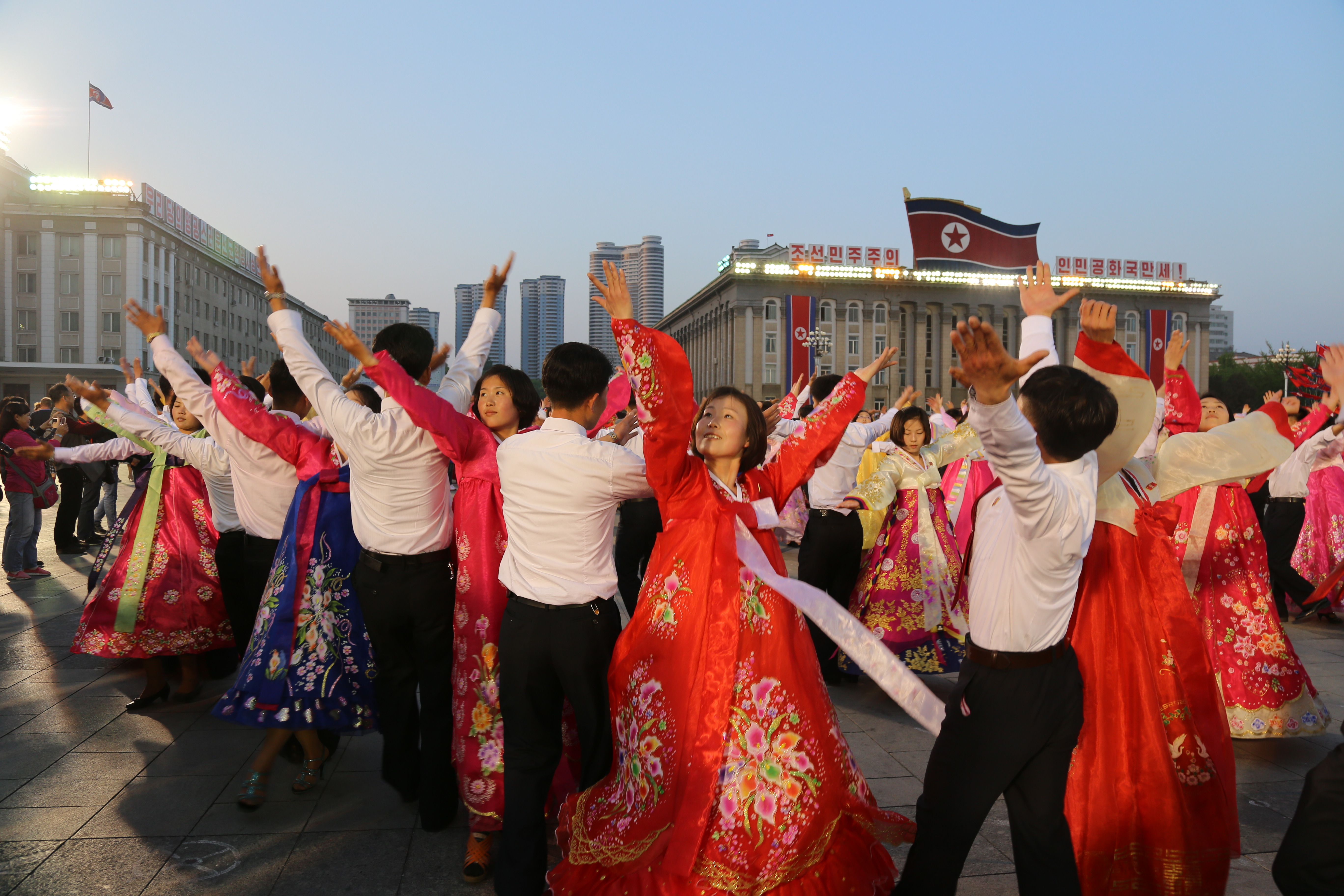 People dance at the Kim Il Sung Square in central Pyongyang, the Democratic People's Republic of Korea (DPRK), May 1, 2015. (Xinhua/Lu Rui)
