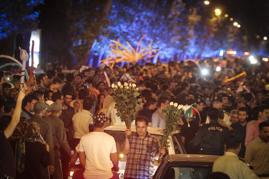 Iranians celebrate the nuclear agreement in Tehran, Iran on July 14, 2015. (Xinhua/Ahmad Halabisaz)
