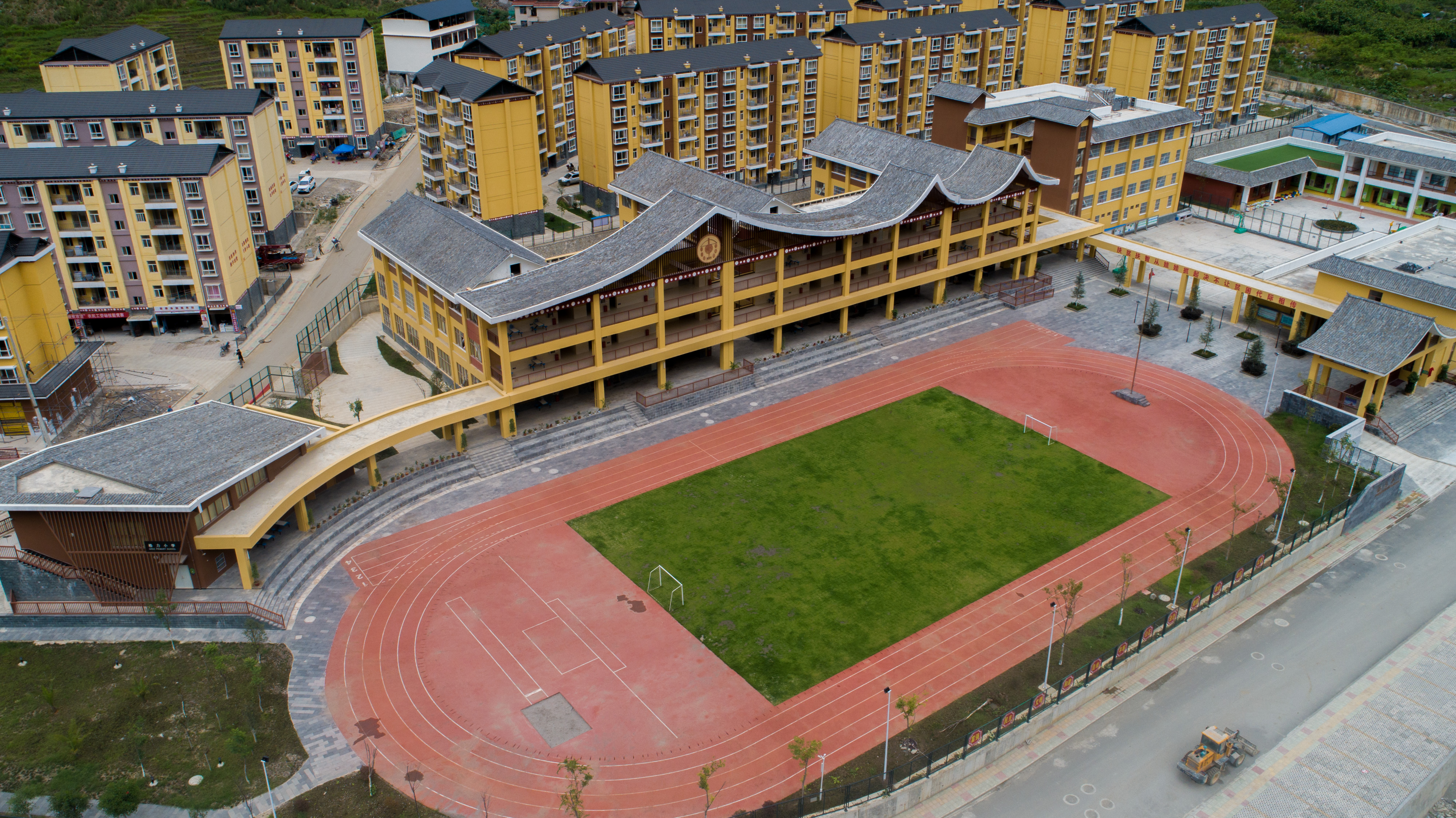 Aerial photo taken on June 24, 2019 shows a resettlement site for people of Lisu ethnic group in Daxingdi Town, Lisu Autonomous Prefecture of Nujiang, southwest China's Yunnan Province. (Xinhua/Hu Chao)