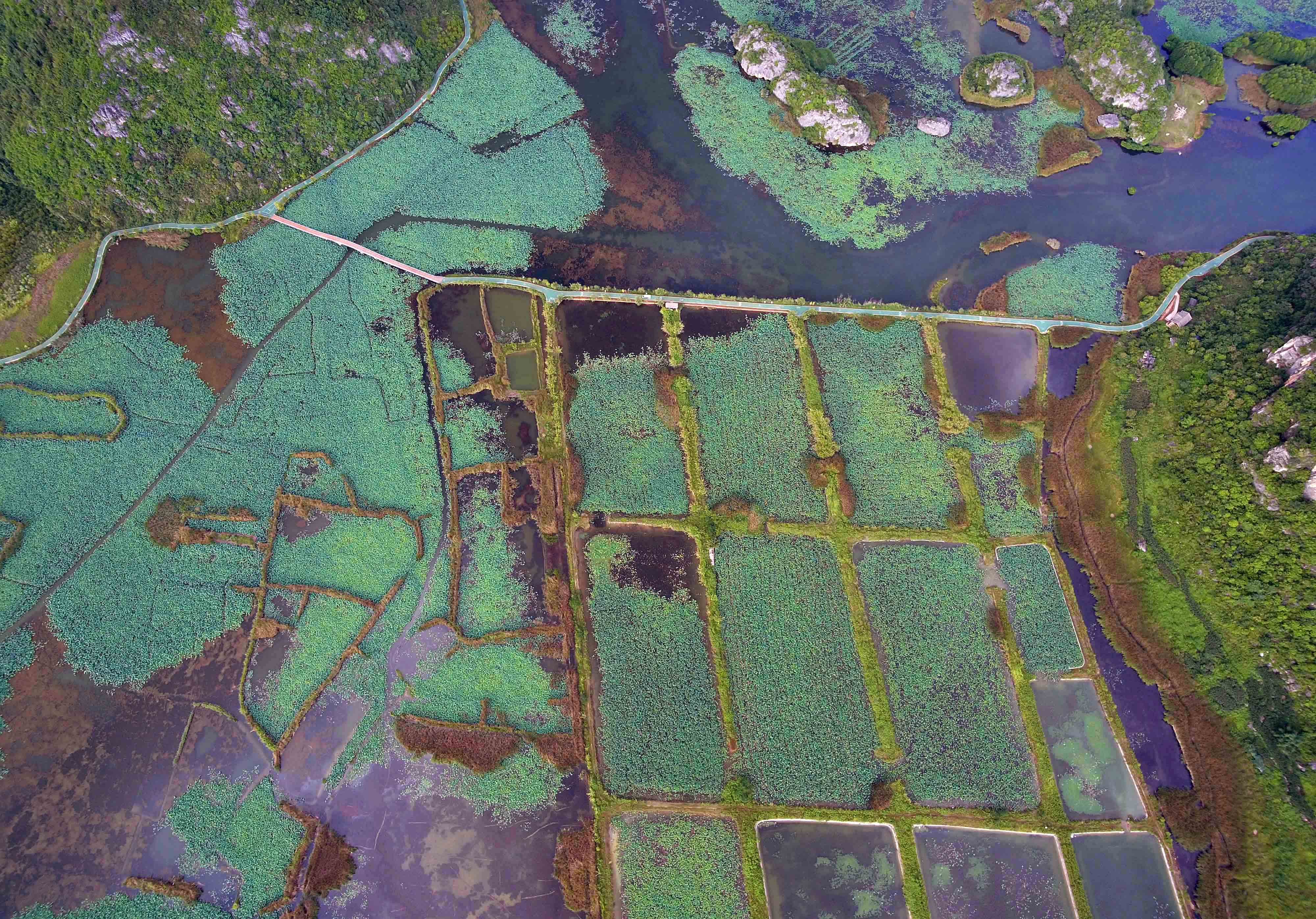 Stunning aerial shots show summer scenery of Puzhehei national wetland park in SW China.