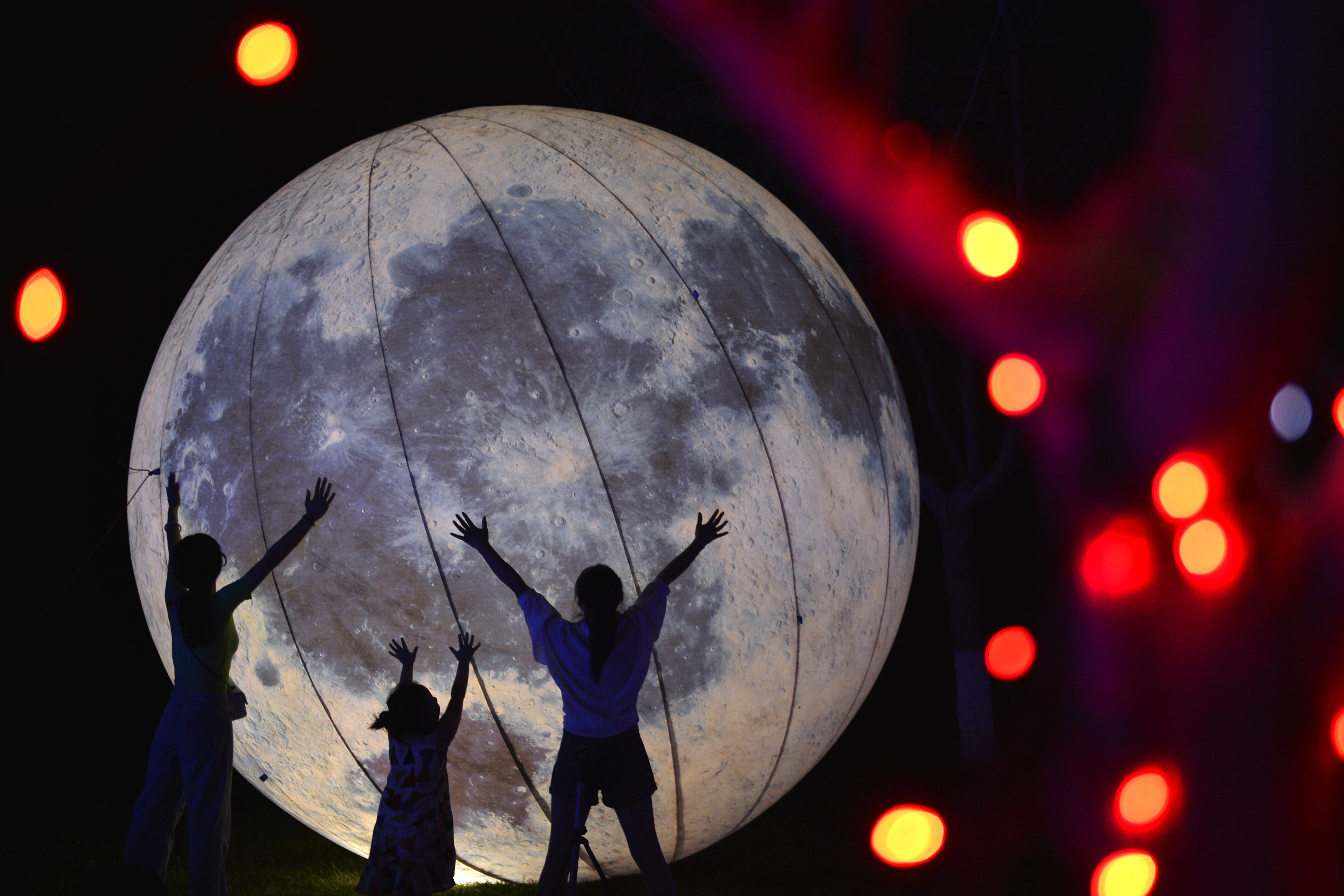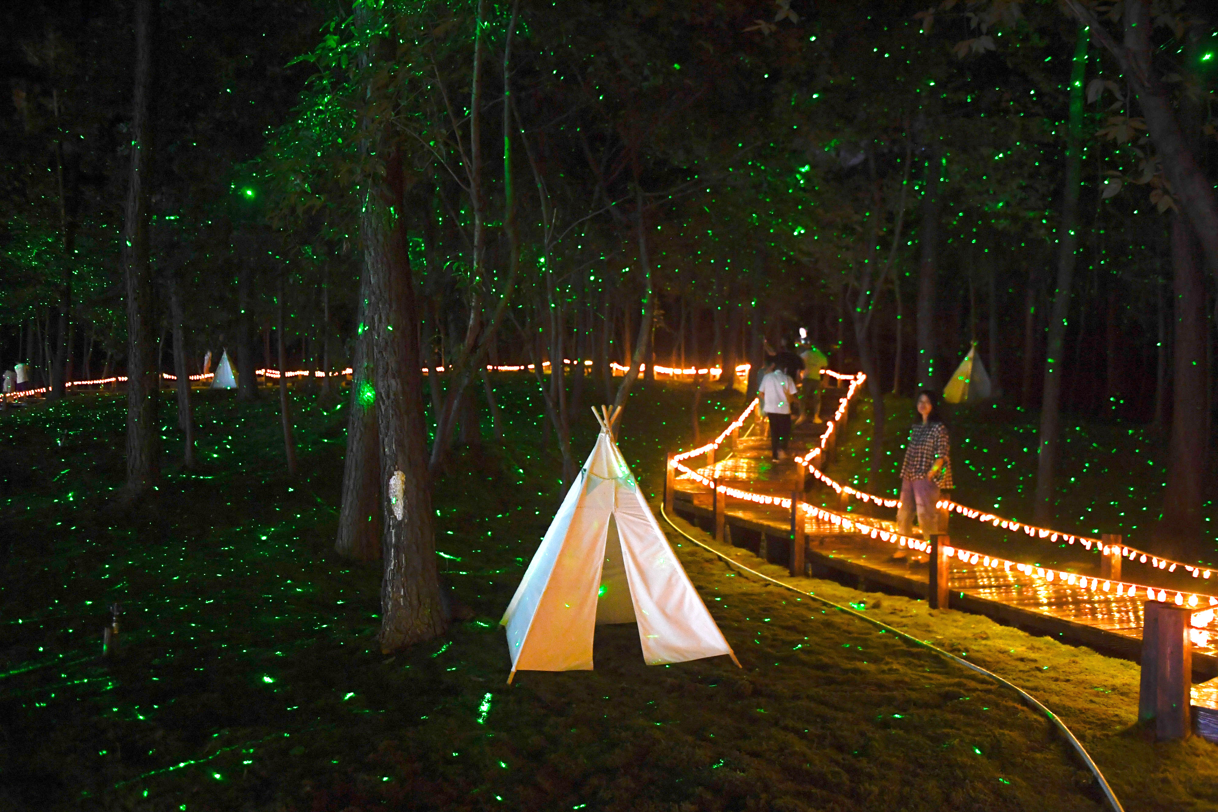 People watch a light show at Jianshan Village of Anji County, east China's Zhejiang Province. (Xinhua/Huang Zongzhi)