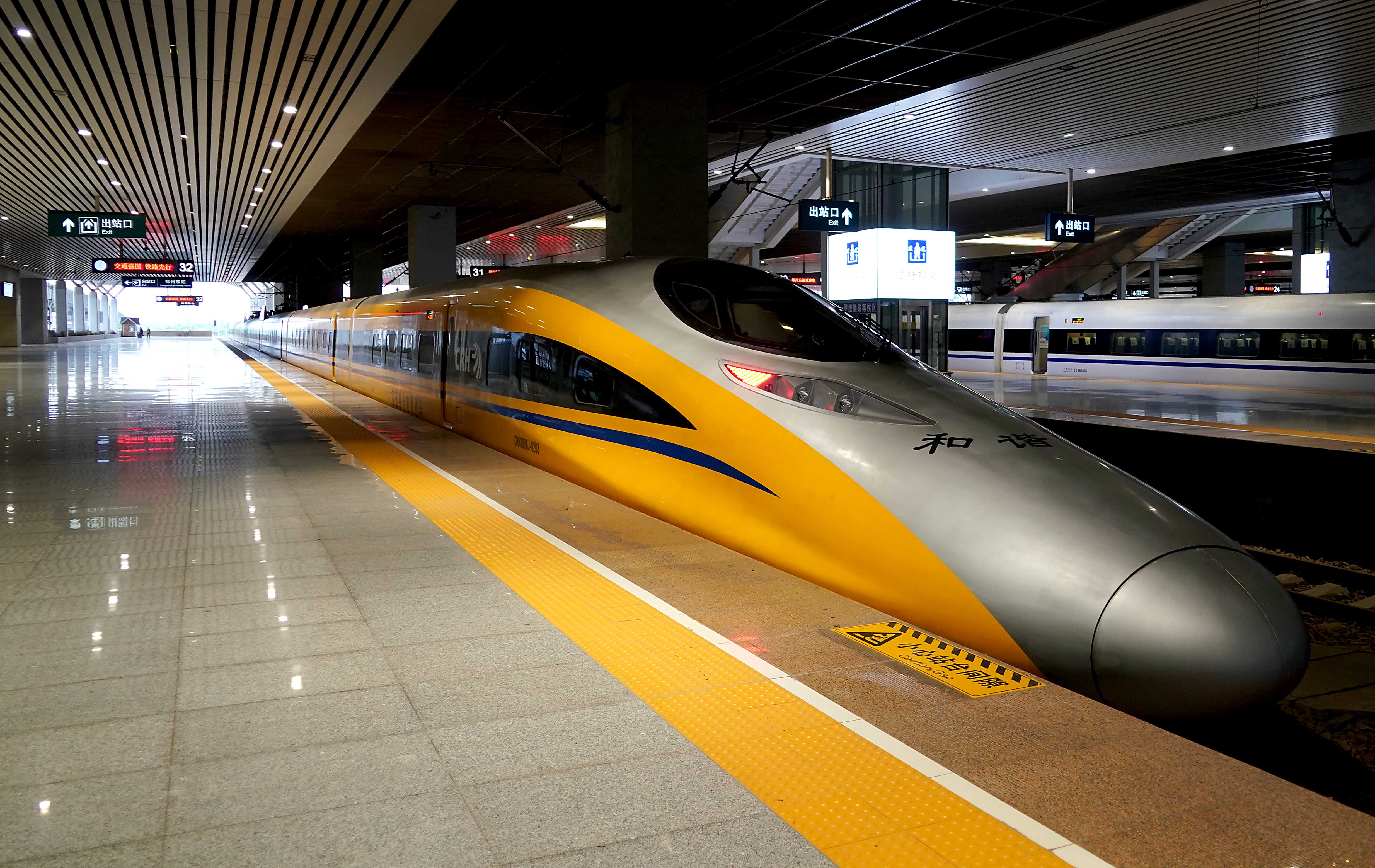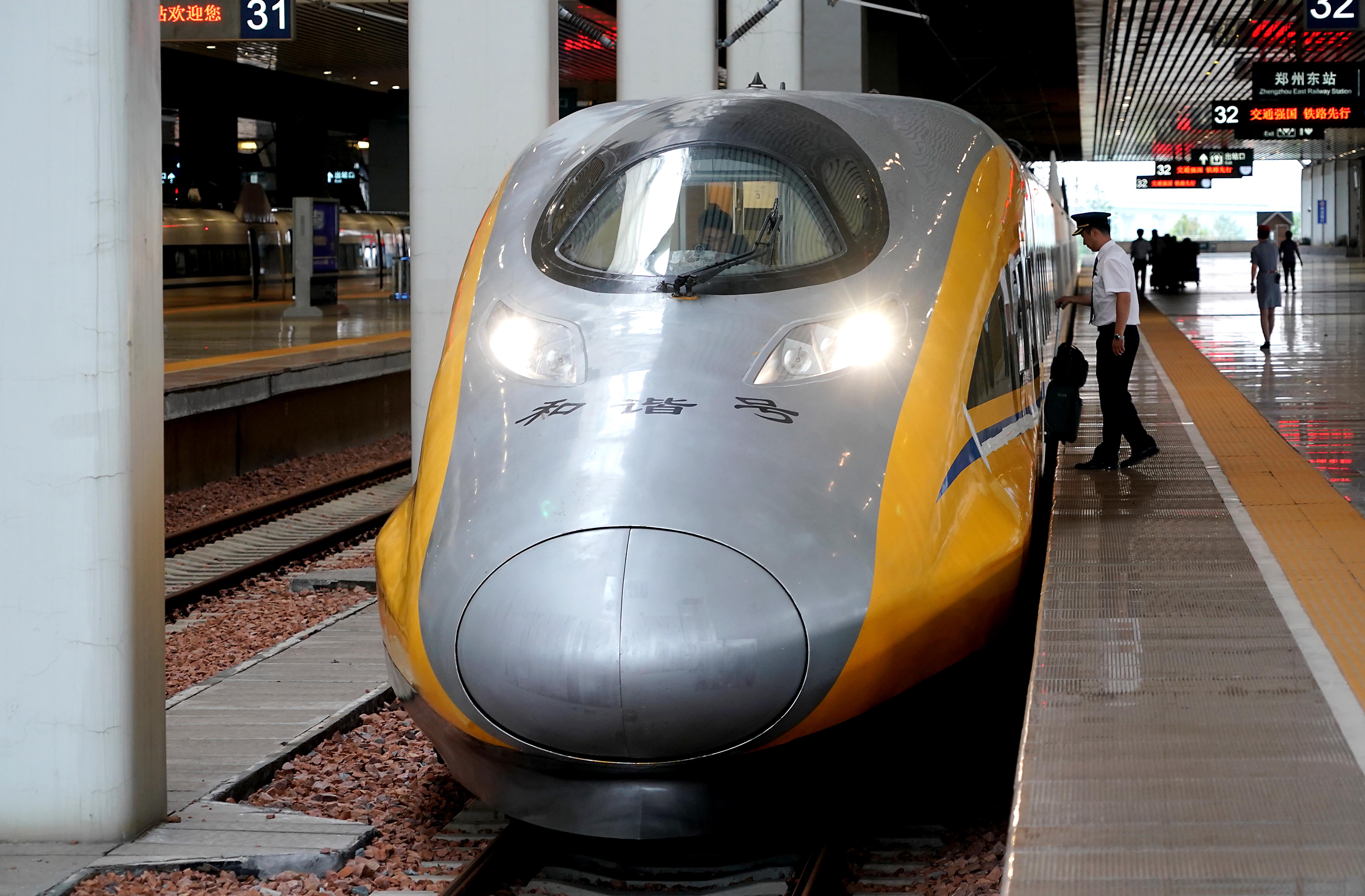 High-speed railway line linking central and southwest China starts joint test at the Henan section.