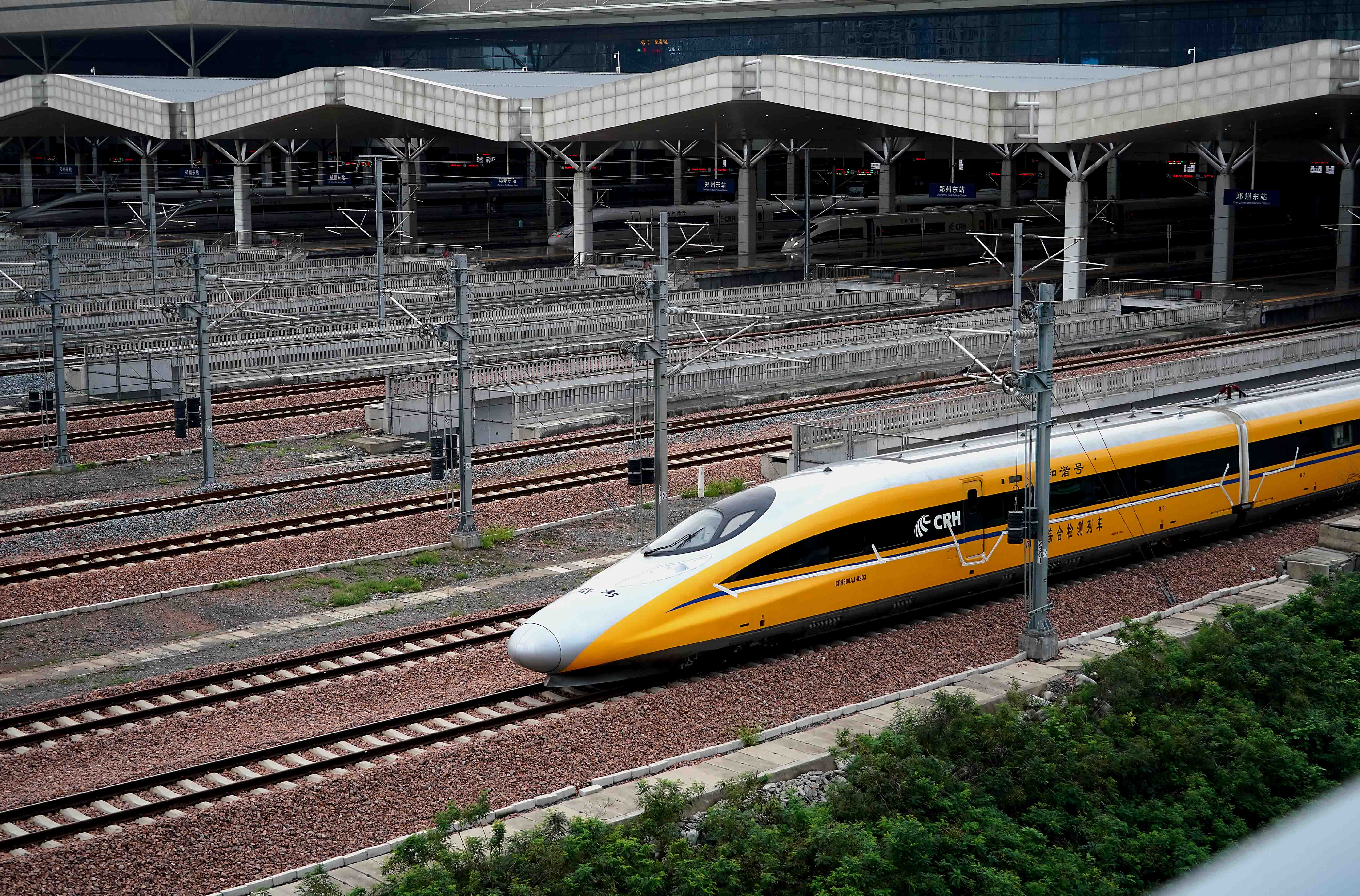 A comprehensive inspection train leaves Zhengzhou East Railway Station in Zhengzhou, central China's Henan Province. (Xinhua/Li An)