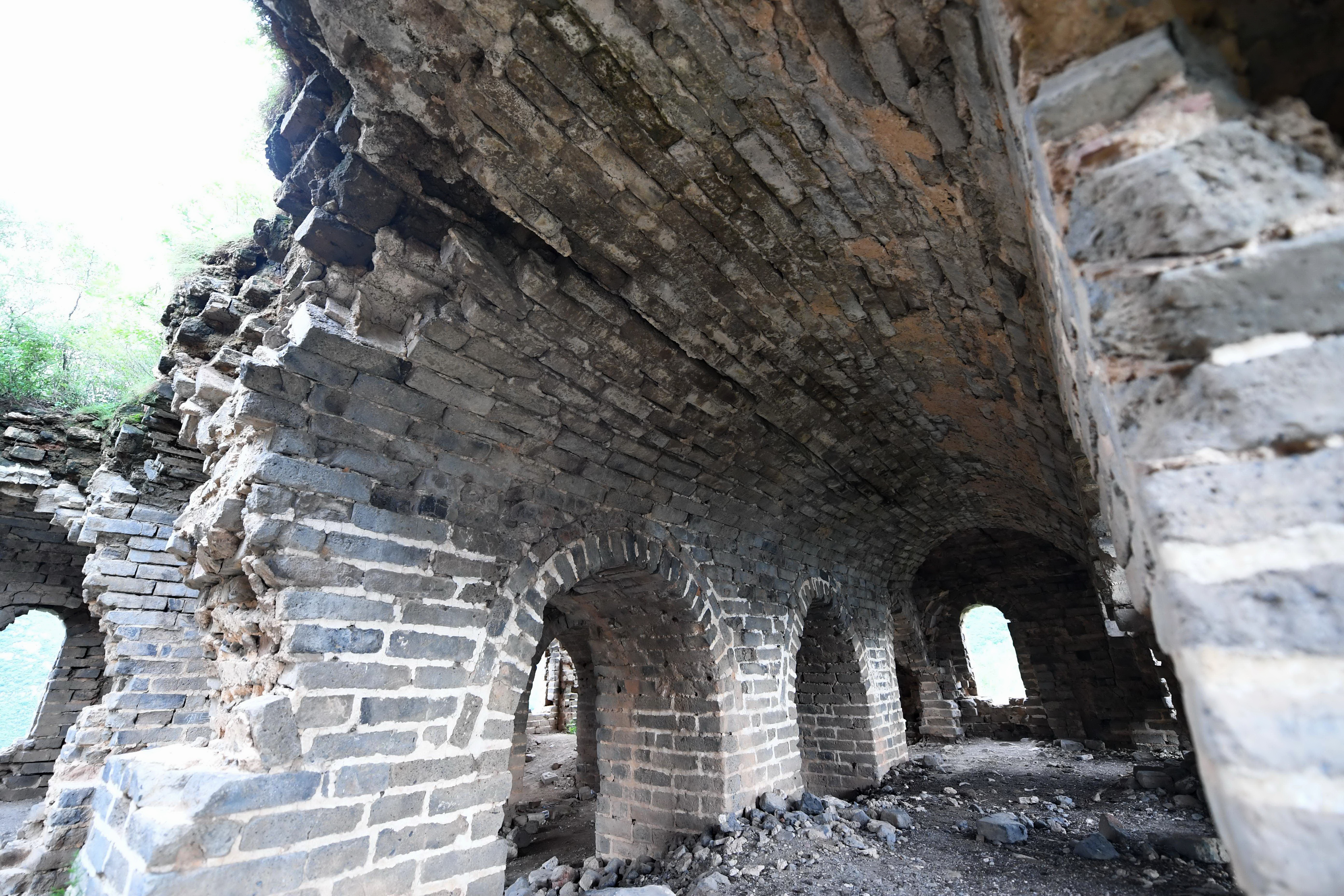 Photo taken on Aug. 13, 2019 shows a section of the Great Wall in Panjiakou reservoir in north China's Hebei Province. (Xinhua/Gong Zhihong)