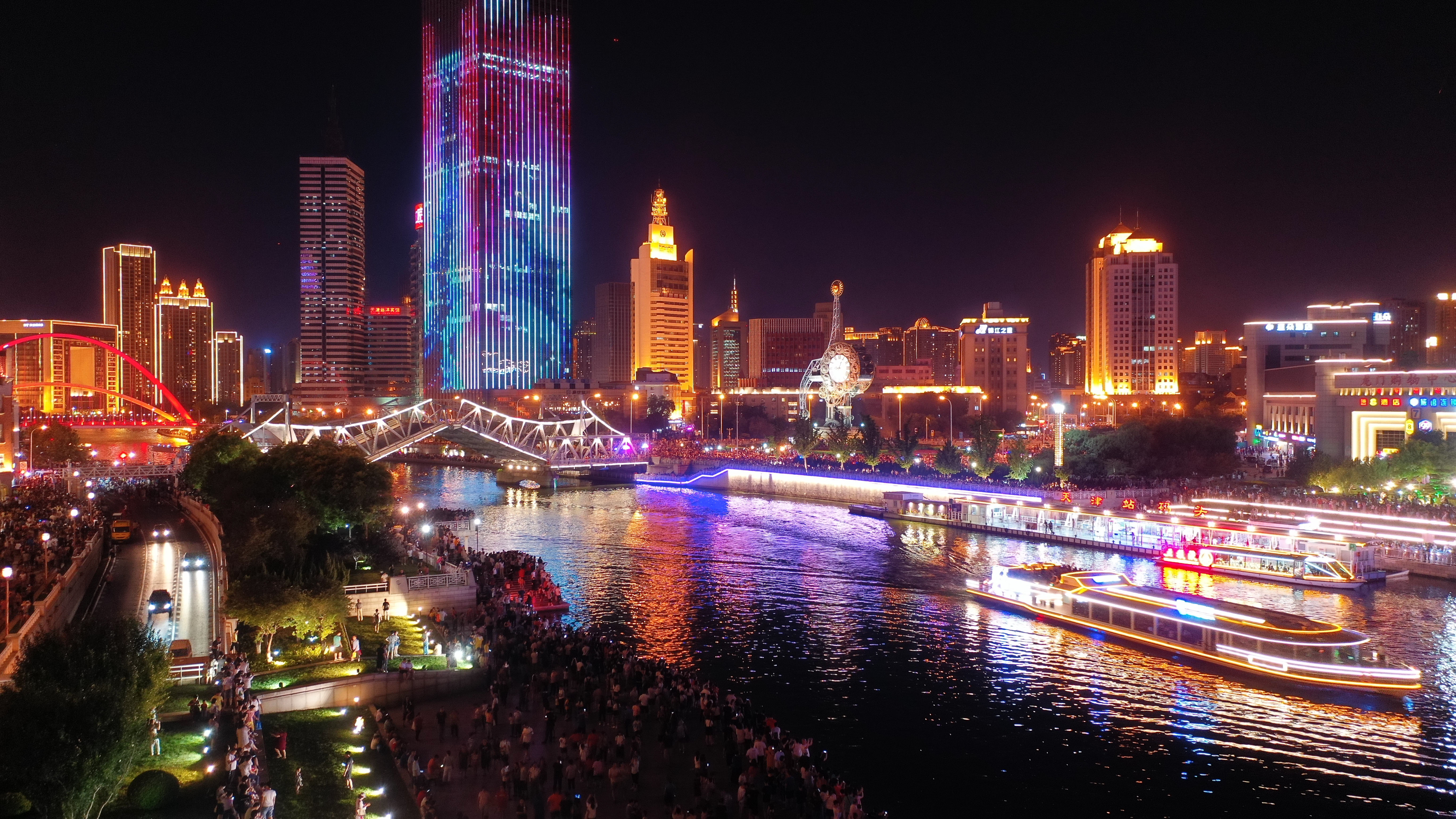 Aerial photo shows the opened Jiefang Bridge in Tianjin, north China, July 1, 2019. (Xinhua/Li Ran)
