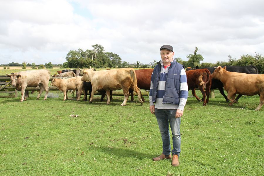 Micheal Thornton, a 43-year-old Irish beef farmer, stands in his family farm in Clonee Village of County Meath, Ireland, Aug. 9, 2019. (Xinhua/Zhao Tianyu)
