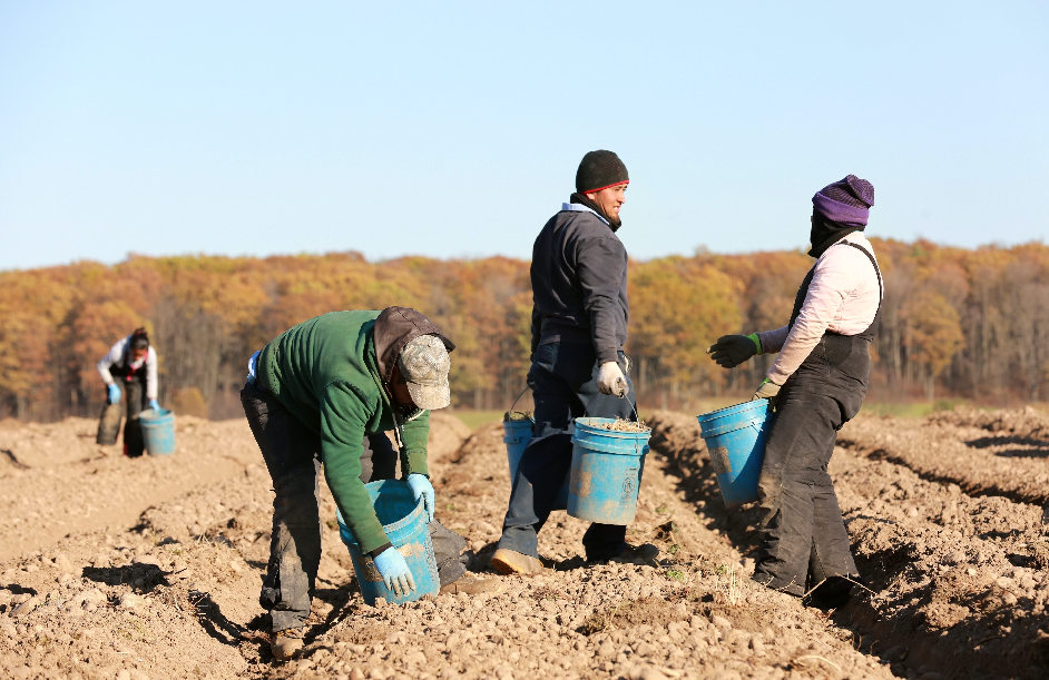 Local workers dig ginseng at a ginseng farm in Marathon County of Wisconsin state, the United States, on Oct. 22, 2018. (Xinhua/Wang Ping)