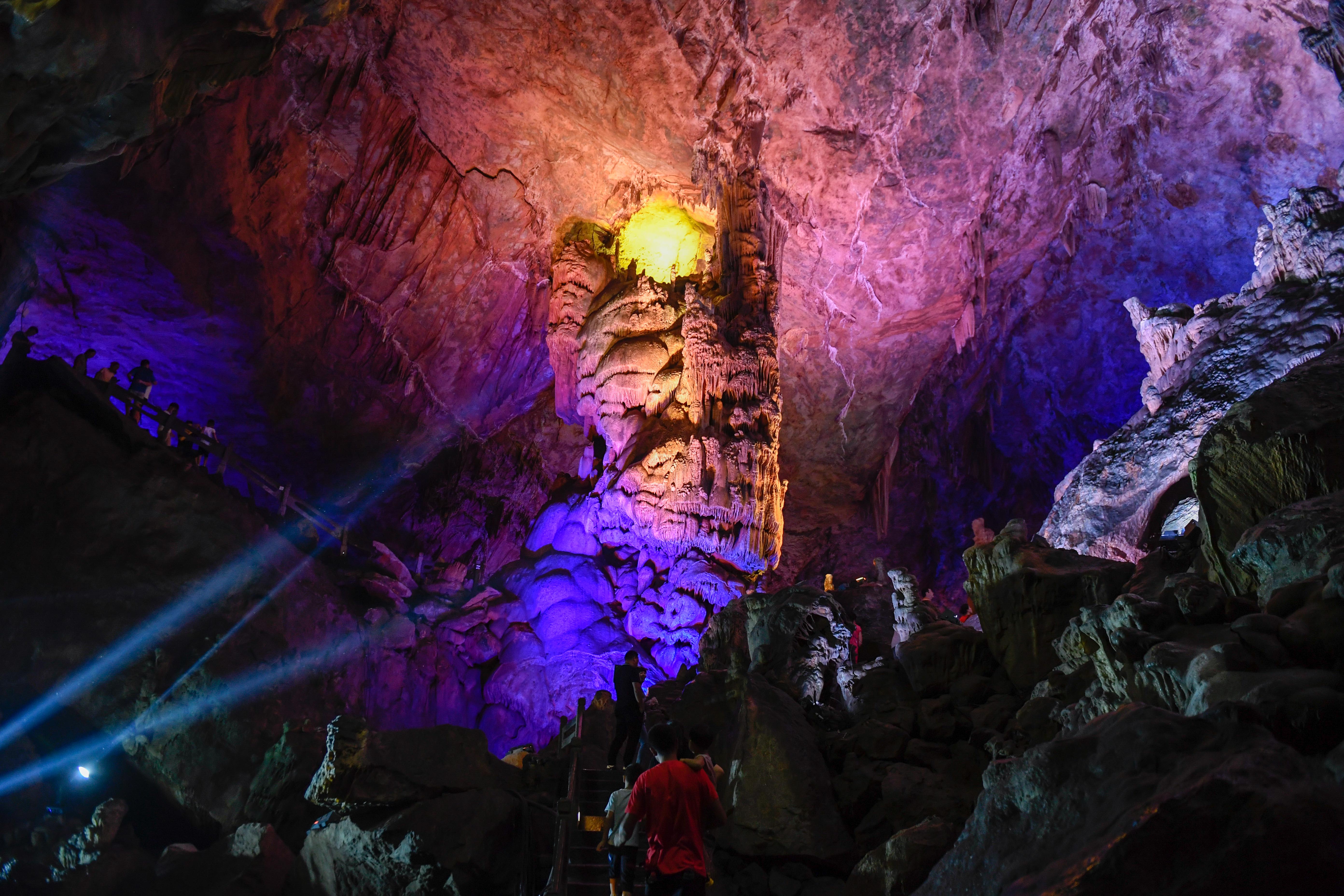 Tourists visit the Yaolin karst cave in Tonglu County, east China's Zhejiang Province, Aug. 25, 2019. (Xinhua/Huang Zongzhi)