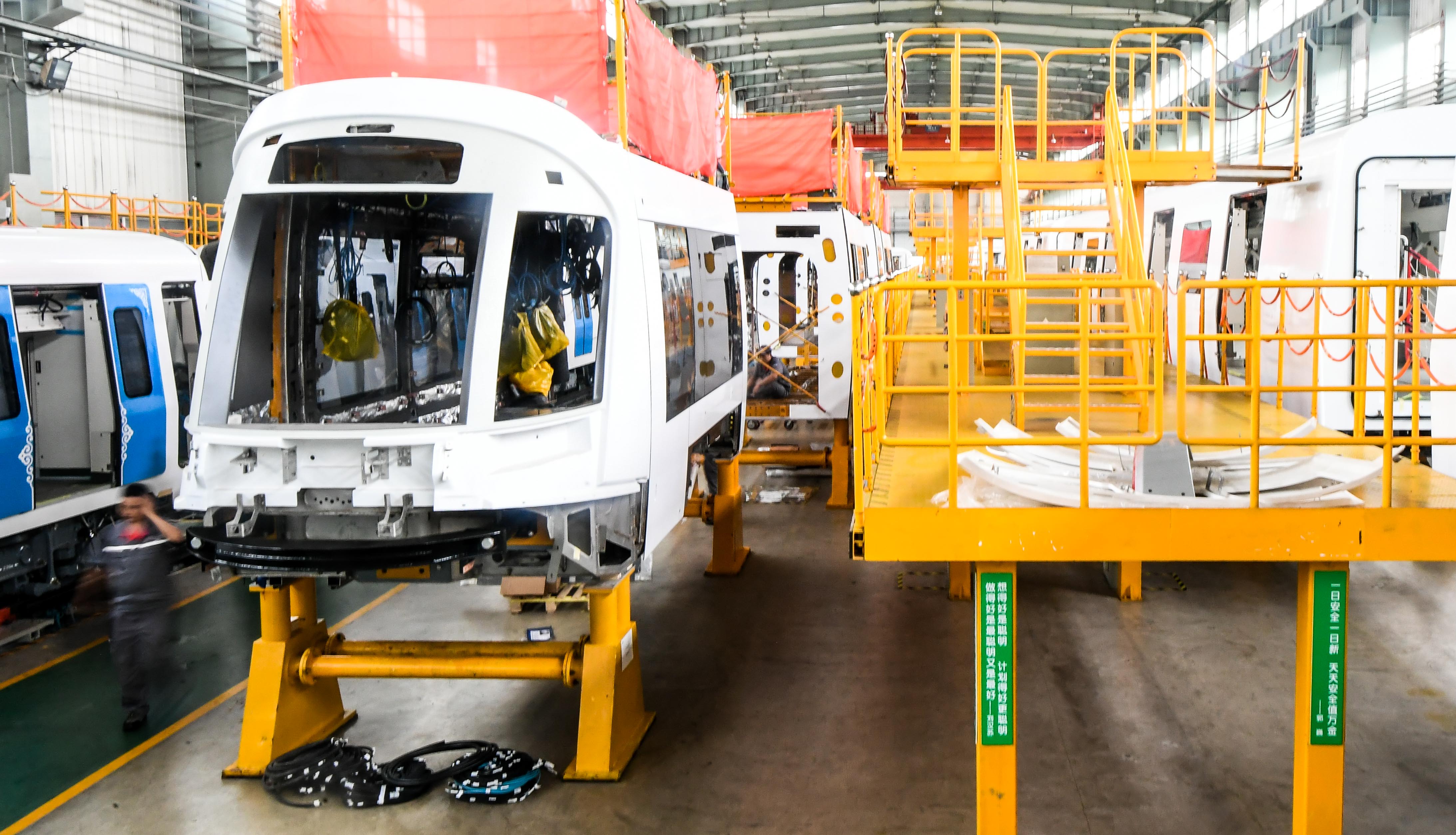 Explosion-proof light rail trains are being manufactured in CRRC Changchun Railway Vehicles Co., Ltd. in Changchun, capital of northeast China's Jilin Province, July 25, 2019. (Xinhua/Wang Haofei)