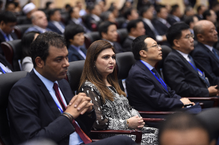 Guests attend the opening ceremony of the fourth China-Arab States Expo in Yinchuan, capital of northwest China's Ningxia Hui Autonomous Region, Sept. 5, 2019. The four-day event will feature trade fairs and forums on infrastructure, Internet plus healthcare, high technology, modern agriculture, logistics, tourism, digital economy and industrial cooperation. (Xinhua/Wang Peng)