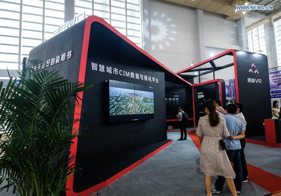 People visit a section of information technology at the 9th China Smart City and Intelligent Economy Expo in Ningbo, east China's Zhejiang Province, Sept. 6, 2019. Unveiled here on Friday, the 9th China Smart City and Intelligent Economy Expo showcases latest products and technologies in the area. (Xinhua/Xu Yu)