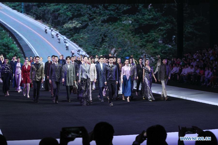 Models present creations during the 30th China (Dalian) International Garment and Textile Fair in Dalian, northeast China's Liaoning Province, Sept. 7, 2019. The fair started in Dalian on Saturday. (Xinhua/Long Lei)