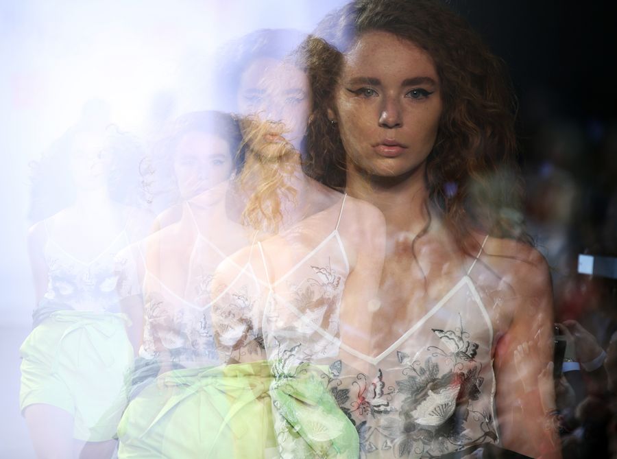 Models present creations from Taoray Taoray Spring/Summer 2020 collection during the New York Fashion Week, on Sept. 11, 2019. (Xinhua/Qin Lang)