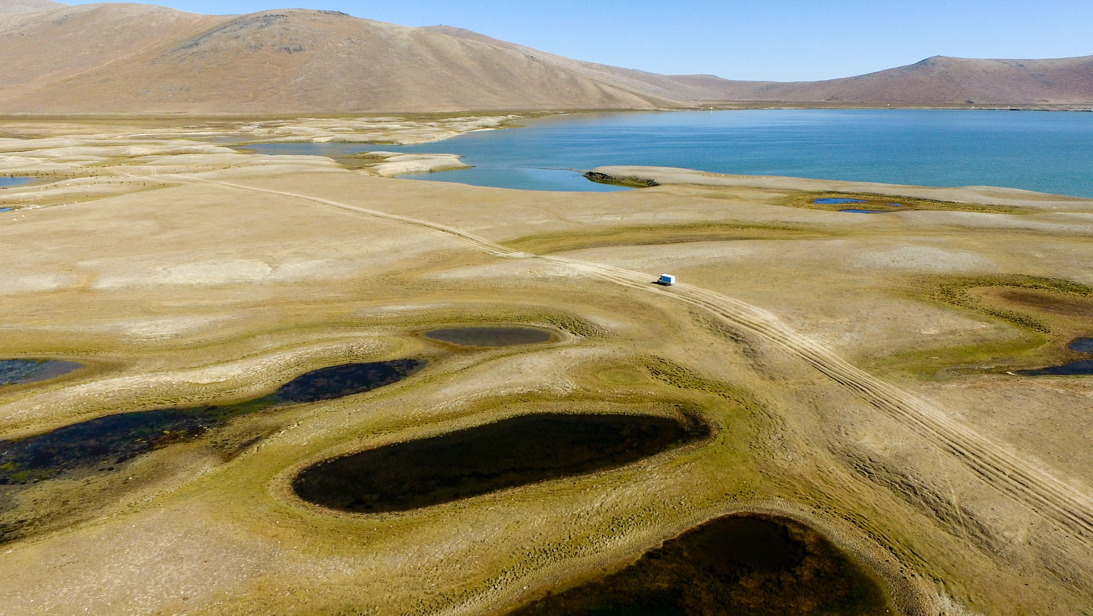 A delivery truck running in the pasture in Sarbulak Village of Qagan Gol Township in Qinghe County, northwest China's Xinjiang Uygur Autonomous Region. (Xinhua/Jiang Wenyao)