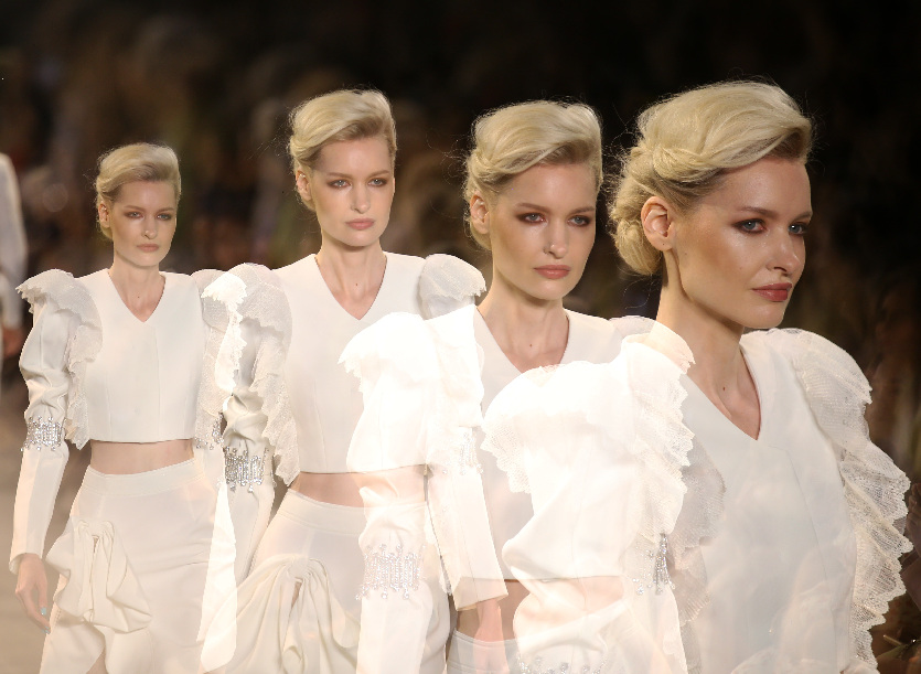 Born in southwest China's city of Chengdu, Li is among about a dozen young Chinese designers who have sprung up in the global fashion arena in recent years. She debuted her brand Blancore in New York with 40 looks that incorporated geometric cuts and subtle color palettes with special detail on the neck and waistline to imitate different forms of water like frost, mist and cloud.