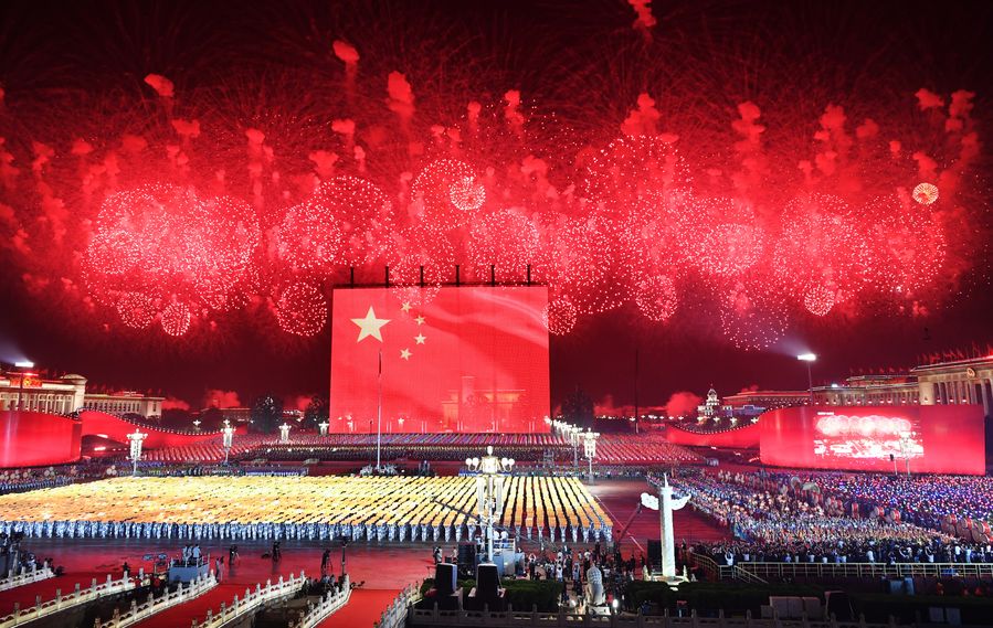 A grand evening gala is staged on Tian'anmen Square to celebrate the 70th anniversary of the founding of the People's Republic of China (PRC), in Beijing, capital of China, Oct. 1, 2019. (Xinhua/Yin Bogu)