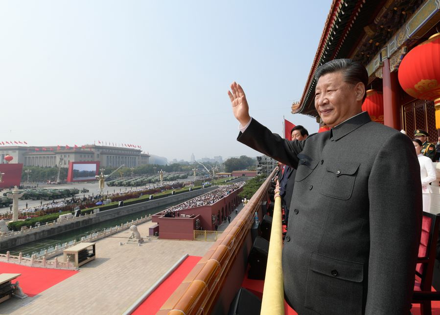 Chinese President Xi Jinping, also general secretary of the Communist Party of China (CPC) Central Committee and chairman of the Central Military Commission, reviews the armed forces during the celebrations for the 70th anniversary of the founding of the People's Republic of China (PRC) in Beijing, capital of China, Oct. 1, 2019. (Xinhua/Li Xueren)