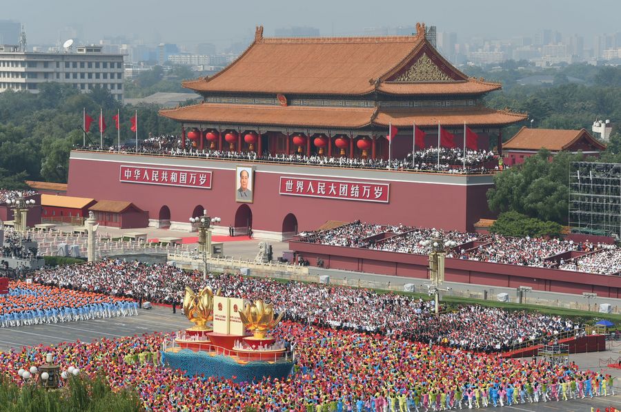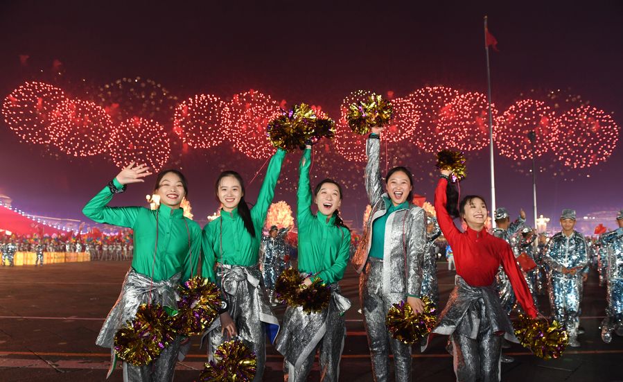 People take part in a mass pageantry celebrating the 70th anniversary of the founding of the People's Republic of China (PRC) in Beijing, capital of China, Oct. 1, 2019. (Xinhua/Song Weiwei)