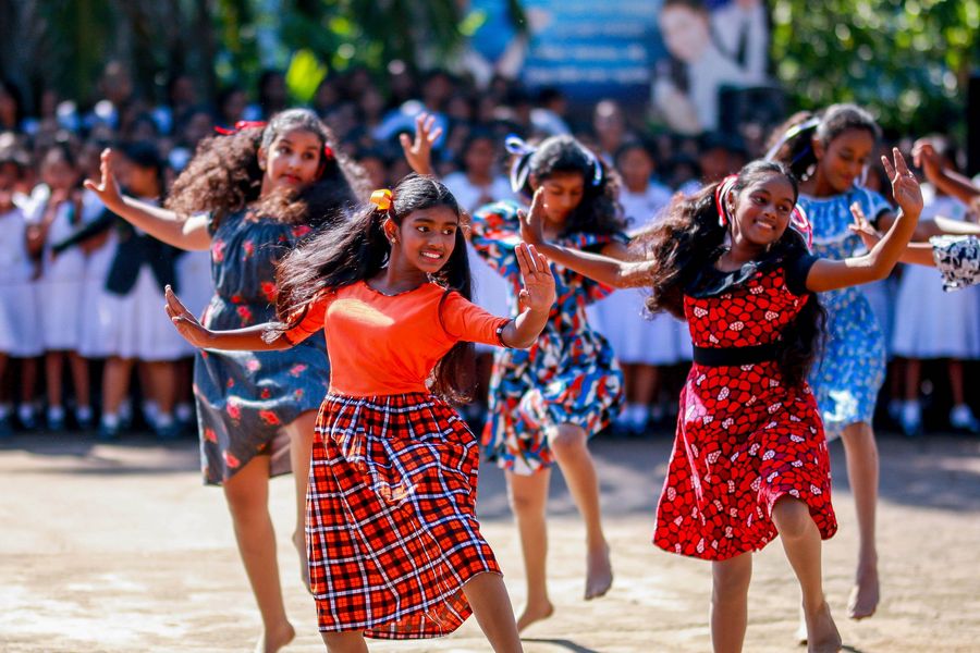 Students perform to celebrate Children's Day at Gothami Balika Vidyalaya in Colombo, Sri Lanka, on October 1, 2019. (Photo by Gayan Sameera/Xinhua)