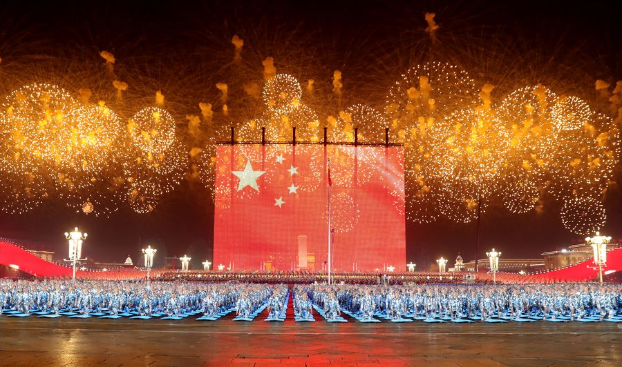 People perform during a grand evening gala at Tian'anmen Square to celebrate the 70th anniversary of the founding of the People's Republic of China (PRC), in Beijing, capital of China, Oct. 1, 2019. (Xinhua/Liu Bin)