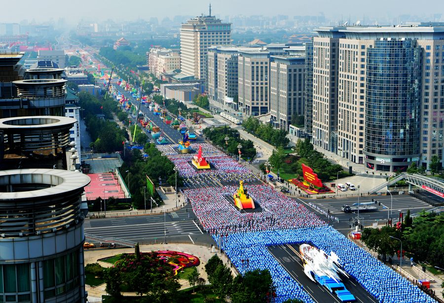 People take part in a mass pageantry celebrating the 70th anniversary of the founding of the People's Republic of China (PRC) in Beijing, capital of China, Oct. 1, 2019. (Xinhua/Ju Zhenhua)