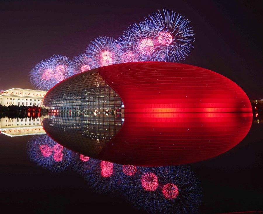 Fireworks explode during a grand evening gala marking the 70th founding anniversary of the People's Republic of China (PRC) in Beijing, capital of China, Oct. 1, 2019. (Xinhua/Jiang Wenyao)